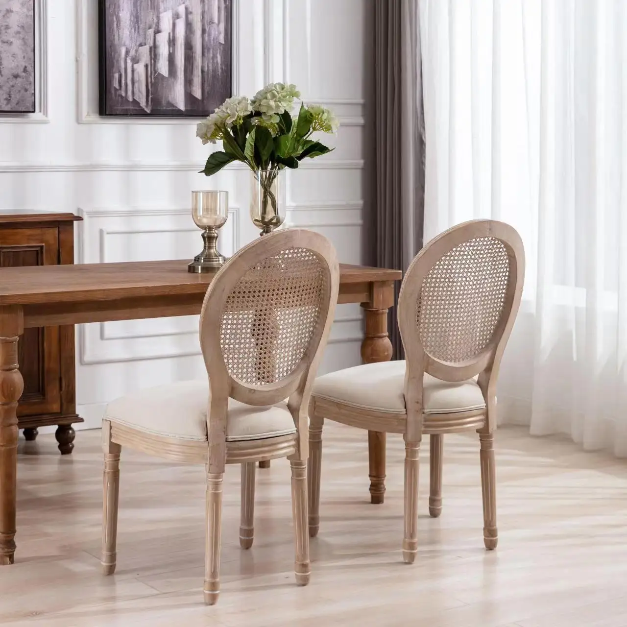 Model: WL-1010 Type: Dining Chair Frame: Solid Wood Framel Dimensions: W49 × D56 × H96 属性:无限自定义添加